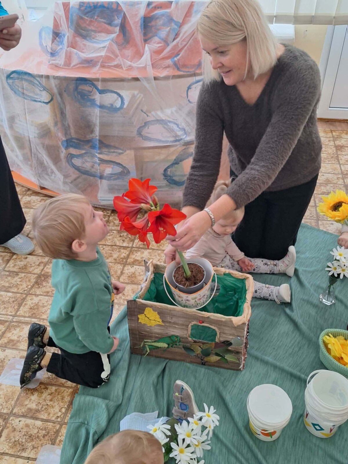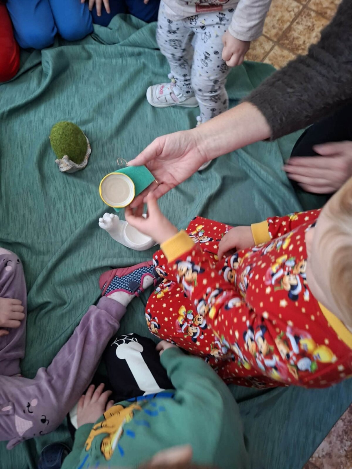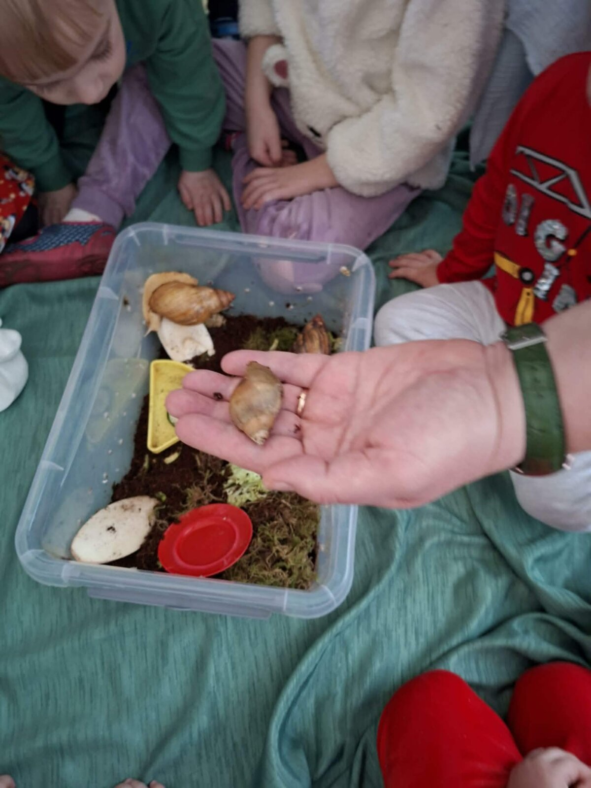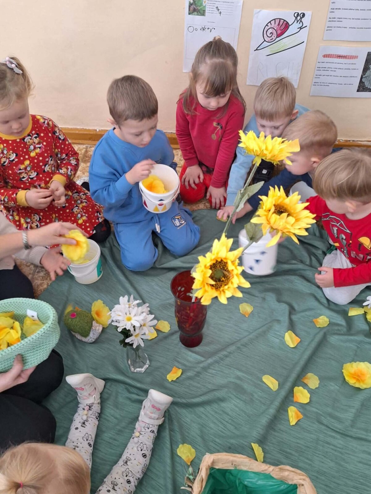 „Sensoriniai skaitiniai mažiesiems“ – istorijas ne tik skaitėme, bet ir patyrėme! Susipažinome su tikromis sraigėmis (stebėjome, tyrinėjome, mokėmės atsargiai elgtis), tyrinėjome gamtines medžiagas – žemę, samanas, akmenukus atradome šviesos elementus ir kūrėme jaukią „skaitinių“ nuotaiką. „Prisišaukėme“ pavasarį gėlėmis ir žiedlapiais, išbandėme pojūčių taką iš akmenėlių ir pusiausvyros veiklas. Patirtis įtvirtinome kūryboje – tapėme, spaudėme kempinėlėmis, kūrėme sraigės vaizdinius. O svarbiausia – istorijas koregavome, papildėme ir sukūrėme savo originalią istoriją „Sraigė Lėtutė“.